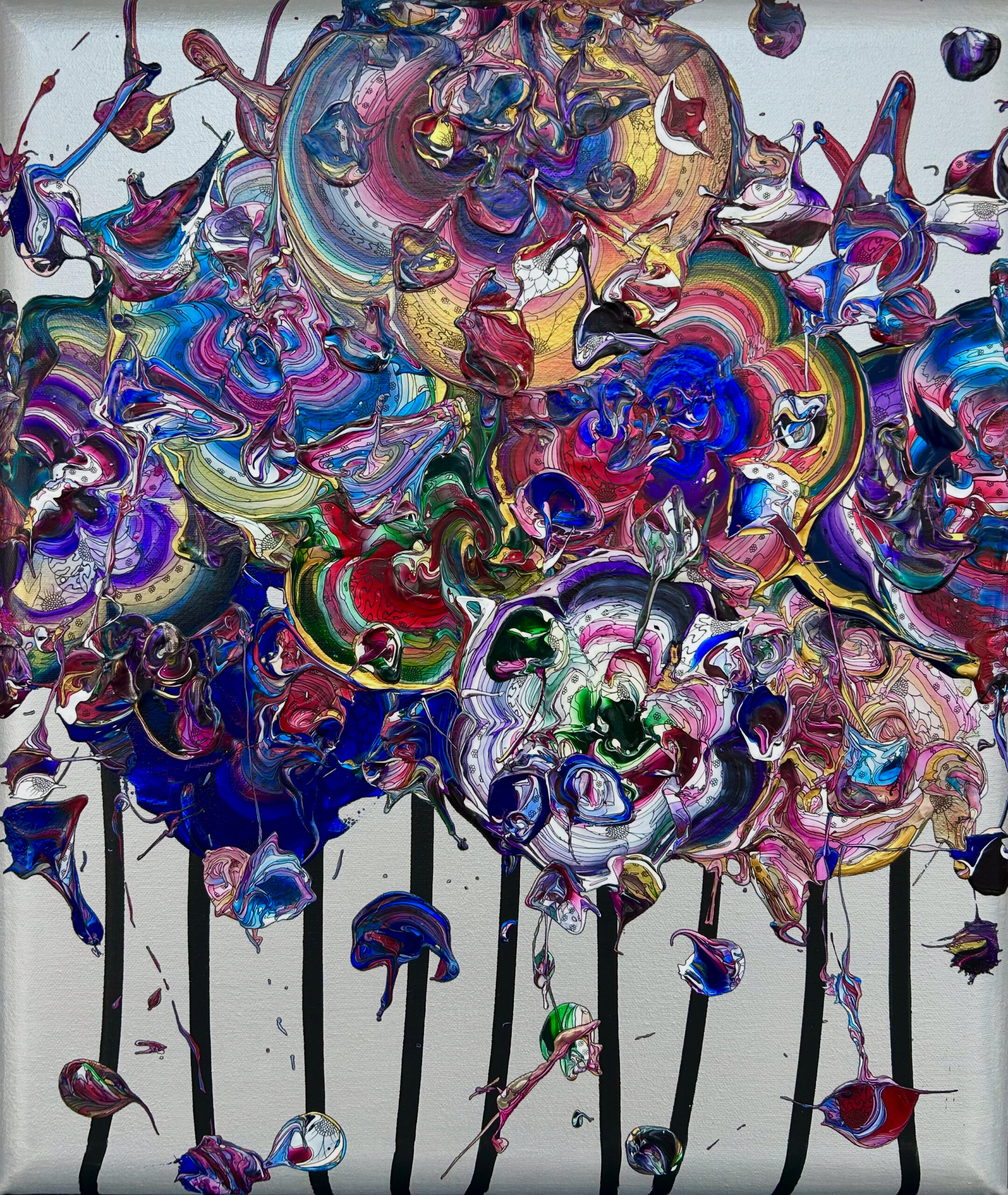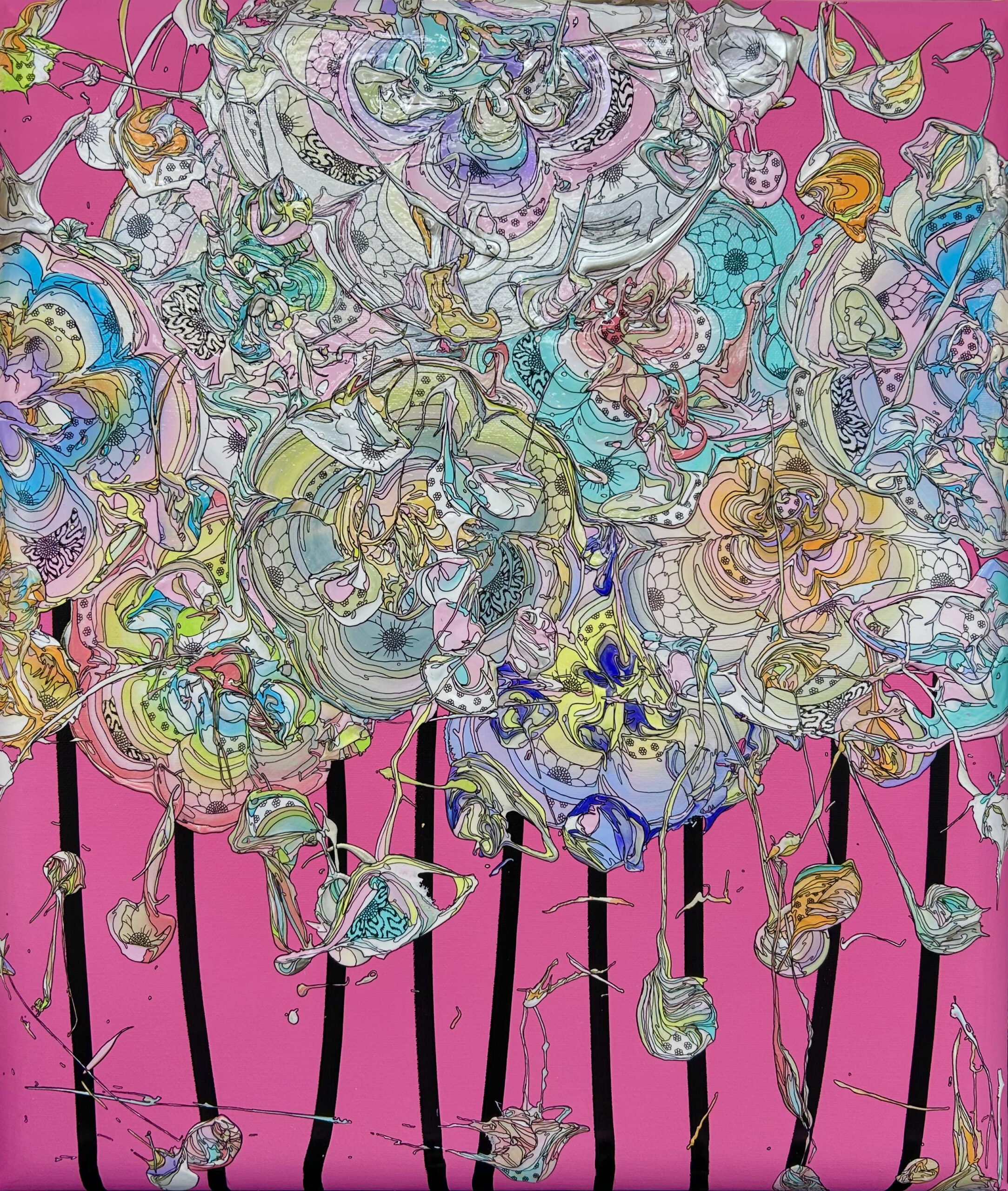 アクリル絵具・顔料インク・和紙・銀箔 / キャンバス