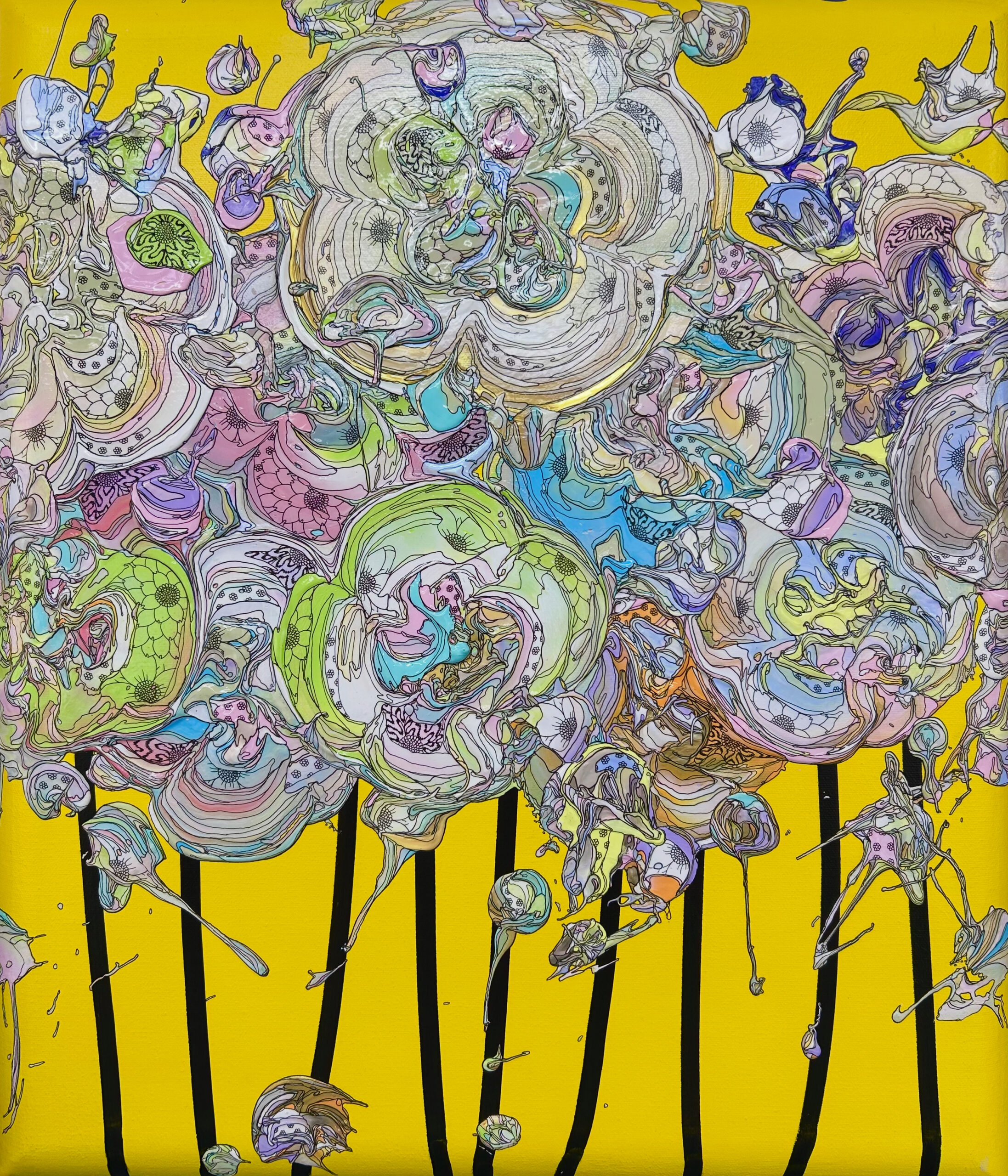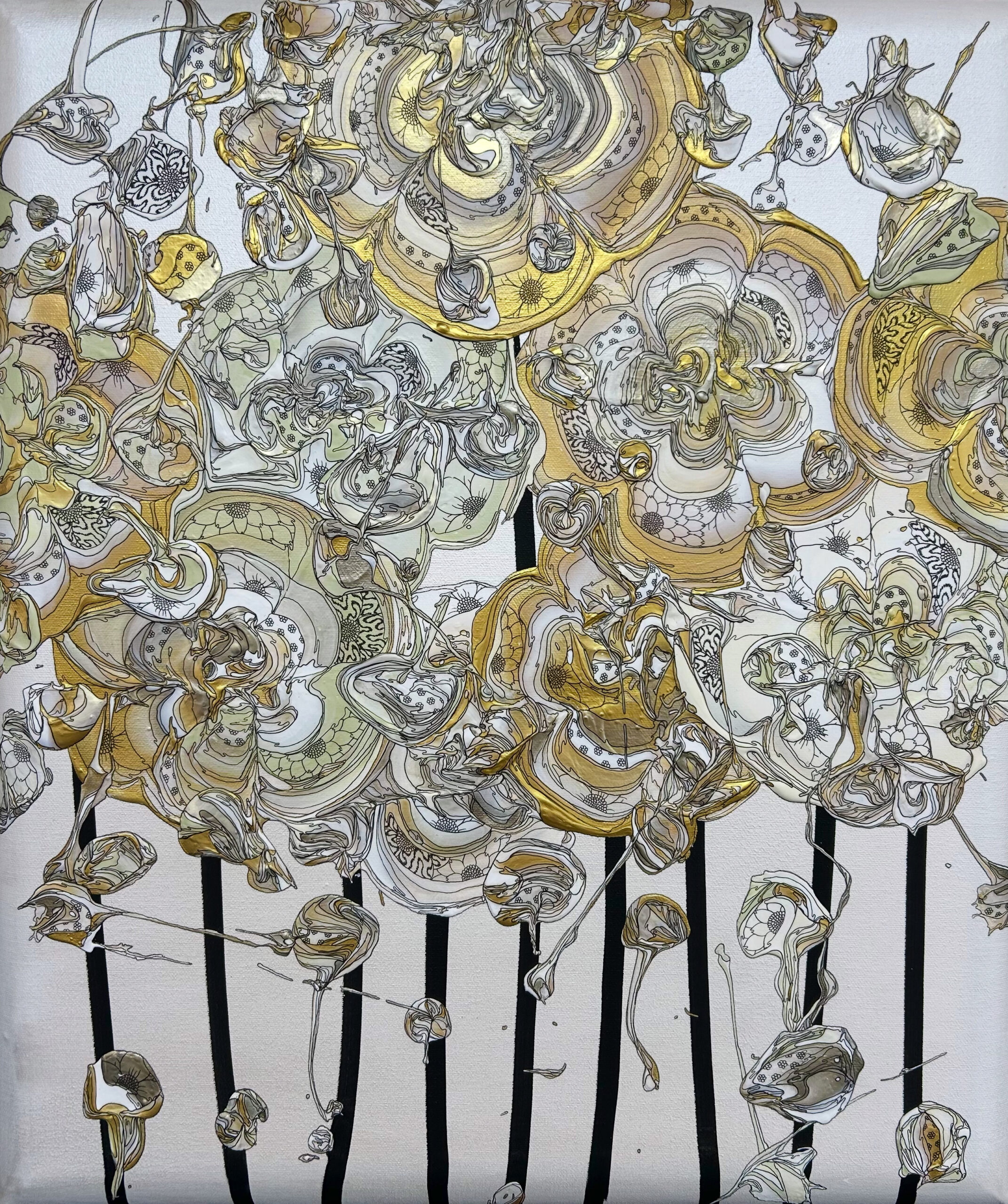 アクリル絵具・顔料インク・和紙・真鍮箔 / キャンバス