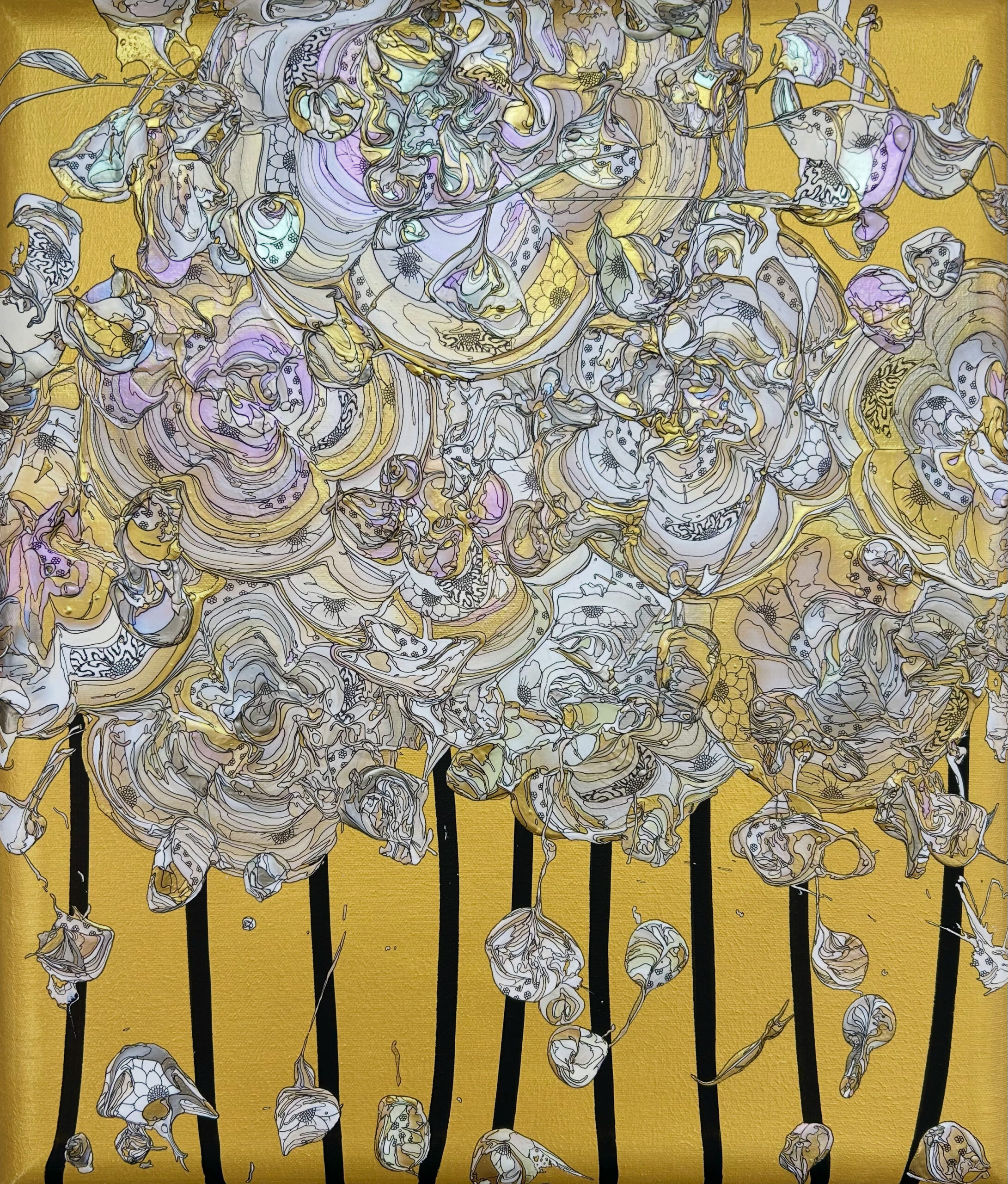 アクリル絵具・顔料インク・銀箔 / 木製パネル